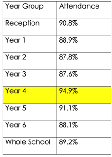 Year Group Attendance Congratulations Year 4 – super attendance!